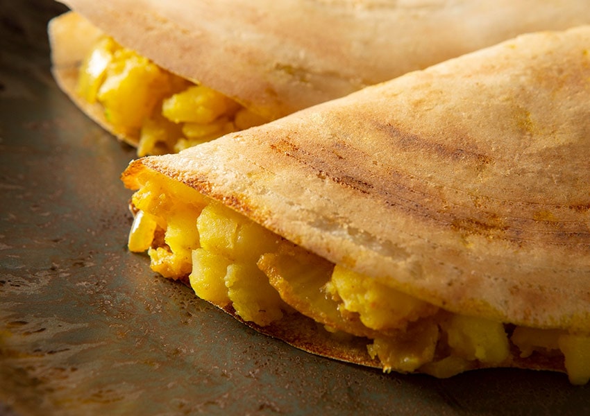It is made from rice, lentils, potato, fenugreek, ghee and curry leaves, and served with chutneys